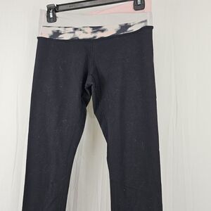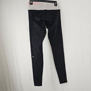 Lululemon Black Leggings Pink Gray Layered Waist Wunder Under Leggings Athletic Size 6.
