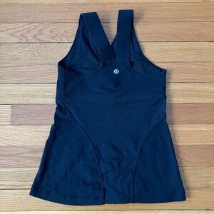 Lululemon Black Mesh Crossover Built-In Sports Bra Workout Tank 4 Gym Fitness