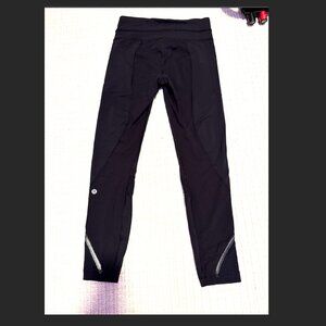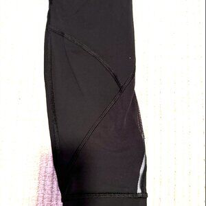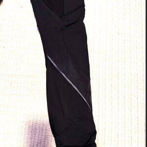 Good condition. Black luxstreme cropped pants have mesh panels on the lower leg and reflective detail perfect for outdoor run reflectivity and breatheability! Features tons of integrated luxstreme pockets around the waistband, a ruched back waist - waist is mid rise. There are crossed fabric, deep side pockets on each leg.