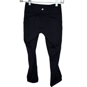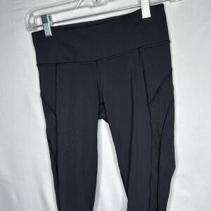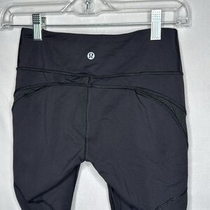 Lululemon Black Mesh Ventilation Run Active Gym Cropped Leggings. Size 4.