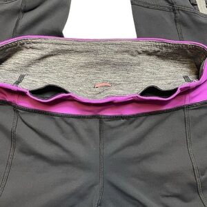 Lululemon Black Pink Tights w/Ruffle Surrounded Reflective Detail - Sz 6