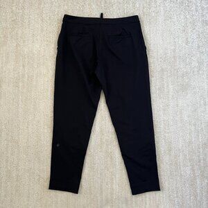 Black pull on pants with pockets. Fabric has stretch. Missing size dot; consignor confirms authenticity and says it's a size 6.