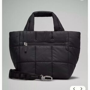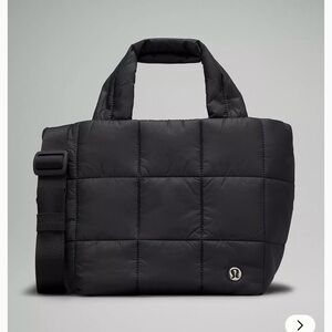 Elegant black quilted tote bag by Lululemon. Ideal for daily use.