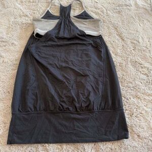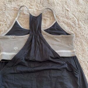 Stay comfortable and stylish during workouts with this black racerback athletic dress by Lululemon. Featuring a breathable fabric and a racerback design with striped detailing, this dress offers both style and functionality. Perfect for yoga, gym sessions, or casual outings, this dress provides a flattering fit and flexible movement.