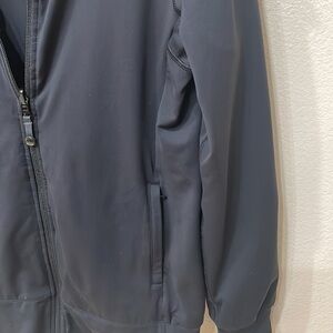 Lululemon Black Reversible Jacket—Beautiful Fabric—Pockets—Drawstring at waist for sizing. Excellent Condition! See measurements for sizing. Size 10-12?