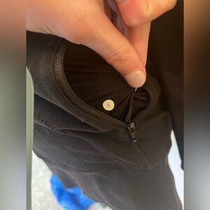 Size 6 Lululemon Scuba Jacket in black. Early style of this jacket, has some stretch to it. Some pilling from wear but still has as lot of life left.