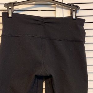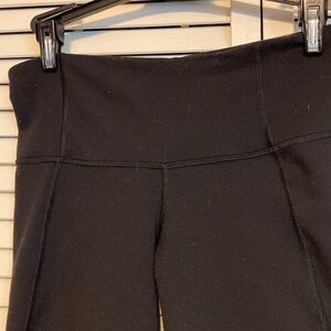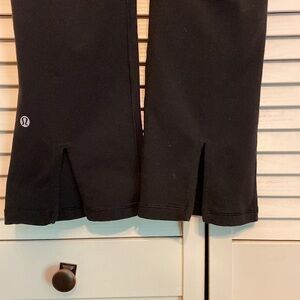 Lululemon black shirt tights with v slit in back by the knees. No tag inside so measurements are from waist seam to seam is 13 inches and inseam is 20 inches. Good condition.