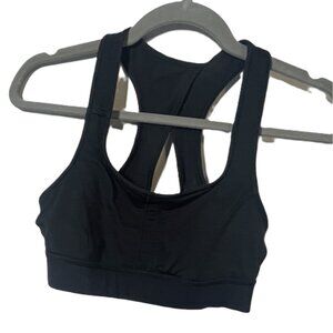 Elevate your workout wardrobe with this Lululemon Black Sports Bra in size 8. This wireless bra offers medium support and features a racerback strap type, pullover closure, and full cup coverage. The bra is made of a comfortable and breathable polyester, nylon, and spandex blend with accents of the Lululemon logo. Perfect for any performance or activity, this sports bra is ideal for athleisure, yoga, and other sports themes. The lightweight and stretchy fabric make it a versatile addition to your activewear collection. Get ready to feel comfortable and stylish during your workout with this Lululemon Envita sports bra.