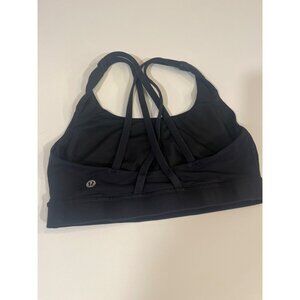 In the heart of your active day, let this Lululemon sports bra provide both style and support. With its intricate strappy back design and smooth black fabric, it weaves comfort into every movement. Perfectly crafted to accompany you through your fitness journey or casual moments of serenity.