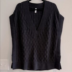 Lululemon Black V-Neck Thick Soft Cable Knit Sweater Vest Oversized M