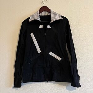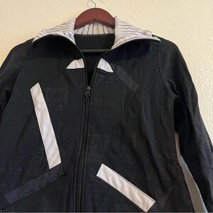 Lululemon Black & White Graphic Print Sweat Once A Day Logo Zip Up Jacket Sz 6