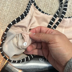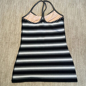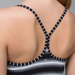 Lululemon Power Y Tank Luon Women's Size 6 Black White Stripe – Stylish Yoga Top with Built-in Support