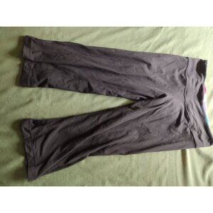 Lululemon size 6 cropped black yoga workout leggings. Has a rainbow inner waist band. 14" across laid flat and unstretched. 27" length. 19" inseam.