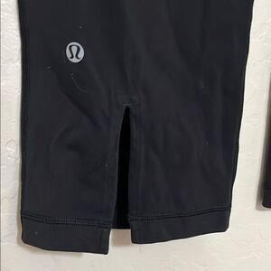 Lululemon Black Athletic Cropped Athleisure Gym Workout Pants. Size 10, slits on the bottoms, please note; has signs of wear & stains in the front.