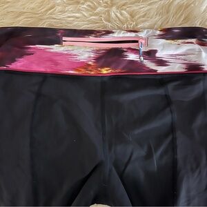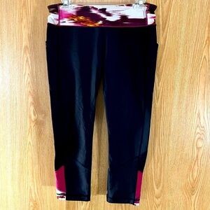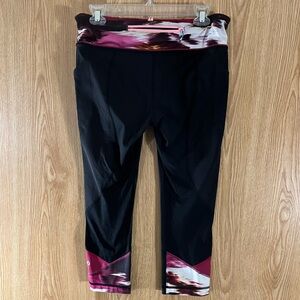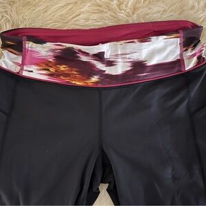 Lululemon Black/Burgundy Compression Workout Leggings Joggers Zippered Pockets