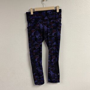 Lululemon Black Purple Camo Wunder Under Crop Yoga Leggings Size 2