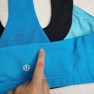 Lululemon Blue & Black Logo Scoop Neck Mesh Racerback Sports Bra