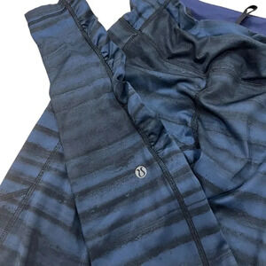 Lululemon Blue Black Striped Ruched Speed Leggings 4