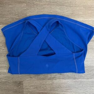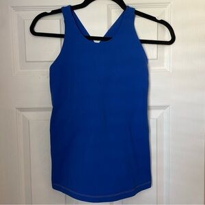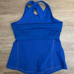 It is a compression top, not flowwy, with a built in shelf bra. Thicker material! No size for, but it is about 15 inches pit to pit, making it likely a size 6.
