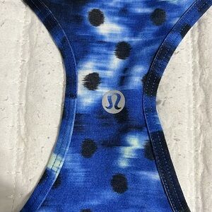 Stylish blue patterned racerback tank top with polka dots. Perfect for casual wear.