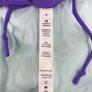 Elevate your active wardrobe with this Lululemon long sleeve quarter zip top. Crafted from a blend of nylon and spandex, this athletic tee offers the perfect mix of comfort and performance. Whether you're heading to the gym or enjoying a casual day out, its stylish blue and purple design ensures you look great while staying comfortable.