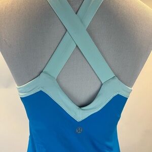 Lululemon Blue Sleeveless V Neck Criss Cross Back tank