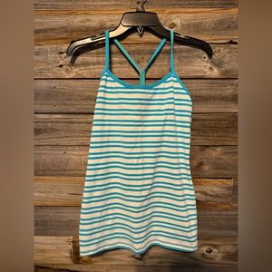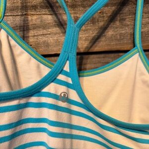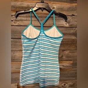 Lululemon Power Y Tank Luon Light Twin Stripe Spry Blue Size 6 Stylish blue and white striped tank top.