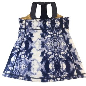 Trendy in blue and white built in bra tank top by Lululemon Athletica measurements in pictures