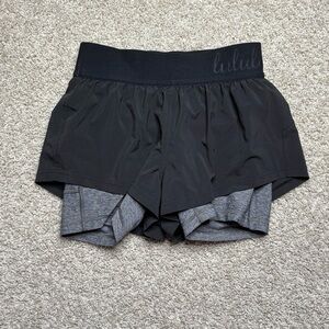 Lululemon Blue sped up shorts w tie dye waistband length 2.5