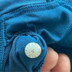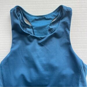 Lululemon Bodycon Tank Top in color Poseidon (basically teal) size 4. Luxtreme 4 way stretch and sweat wicking. Built in shelf bra, no padding. Cute mesh back! Excellent condition!