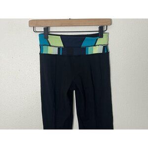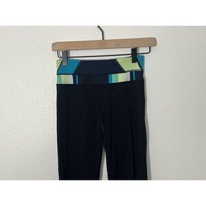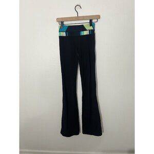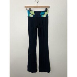 Lululemon Flare Bootcut Pants Black 34” with colorful geometric pattern waistband.