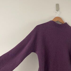 Features: long sleeve, slouchy yet structured, mock neck, ribbed knit, boxy silhouette, breathable, stretch, cotton blend