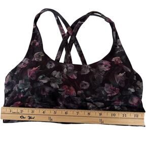 Lululemon Bra Long Line Womens Size 6 Black Floral Energy W Pads Medium Support
