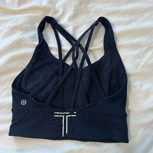 Black Lululemon Bra Top worn but in perfect condition. Size 4. Has a T on the back for my old dance studio but still cute