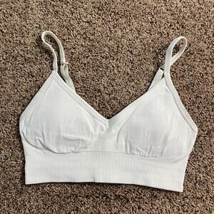 Lululemon Bra Womens 4 White Ribbed Wireless Bralette Adjustable Straps Yoga Gym