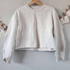 Lululemon Braided Sleeve Cotton Terry Pullover White Opal On The Move Basics 6