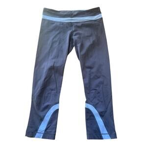 Lululemon Break Free Leggings Women 17 Yoga Gym Cropped Drawstring Low Rise Blue