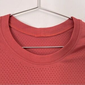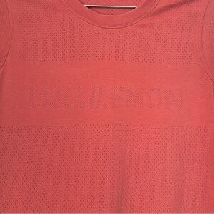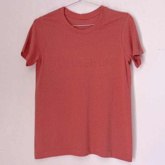 Lululemon Breeze By Short Sleeve Spell Out Vent Athletic Tee Rustic Coral 6