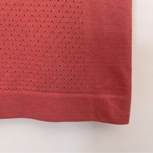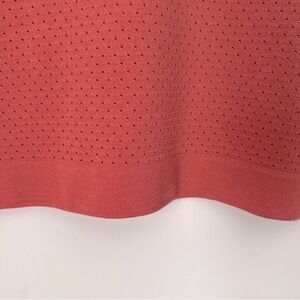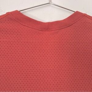 Stay cool and stylish with this coral mesh Lululemon active top. Perfect for workouts or athleisure wear. Relaxed fit, hip length, layers easily, room to breathe.