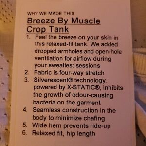 Brand new Lululemon breeze by muscle cropped tank Athletic apparel