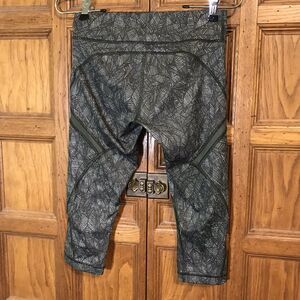 Lululemon Breezy Crop Capris. Mesh Detail, Green Leaf Print, Full-On Luxtreme Leggings. Women's size 4.
