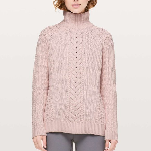 ![[Lululemon] Bring The Cozy Cable Knit Turtleneck Sweater in Misty Pink 8 - Picture 1 of 9](https://di2ponv0v5otw.cloudfront.net/posts/2025/02/25/67bddebfe292aaf3958bd3ba/m_67bddf005d686b25d0f83cd9.jpeg)