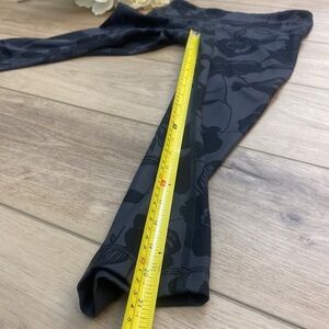 Rare Lululemon Brisk Bloom Black Soot Black and Grey Floral Print cropped Luon Leggings. I believe these are low rise cropped Wunder Under, please see measurements. In excellent condition no flaws Size 2