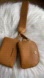 Elegant brown wristlet with dual pouches. Features secure zip closures.
