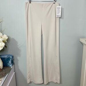 Lululemon Brushed Softstreme Ribbed Zipper Flared Pants in White Opal. These high rise ribbed flares are super soft and versatile. Unzip the hem for a dramatic flared look or zip them up for a slim flare. Soft, stretchy and quick drying. Smooth, wide elastic waistband. Back drop in pocket. 32.5” inseam. High waisted. Size 14. New with tags.