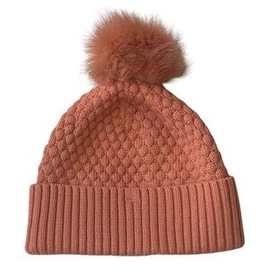This Lululemon Bubble Knit Pom Merino Wool Beanie in Pink Savannah is a size O/S (Style W9DSQS). Made of super soft merino wool blend, with a super cute pompom at the top and a logo patch at the fold. In very good condition.