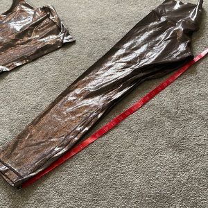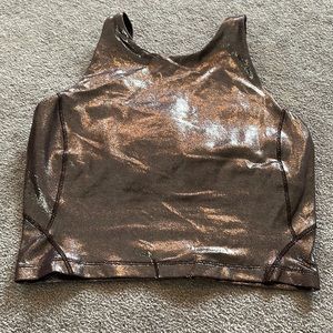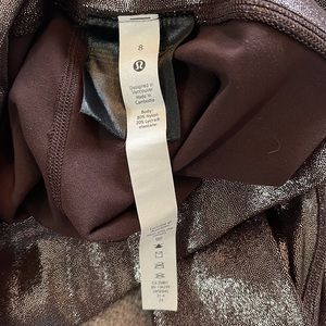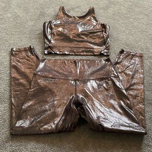 Cropped leggings in size 8 and sports bra in size 6. Both in absolutely perfect condition. Pretty sparkly brown color. Never worn outside of my house. Tags are off though. Pads for bra not included ( I tend to throw them away so it’s rare that I have them). This set is align. Leggings are high waisted. I believe this set also to be a seasonal set (holiday) from a few years ago. Absolutely gorgeous. I just have SO much I need to skinny out my closet as I am downsizing. Reasonable offers considered. Thanks for looking!!