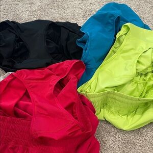 Lululemon bundle of 4 shake it out shorts 2.5 inches! Never worn! All size large! Wasn’t a fan of this style! Two have the inside tag still inside the shorts! Blue & black don’t!. Colors are black, blue, dark pink, and lime color.