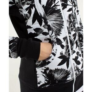 Lululemon Calm & Cozy Jacket Brisk Bloom Black White Cotton Fleece Sz 8 ~ RARE!!