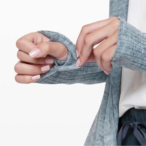 Lululemon Calm and Collected Wrap Heathered Sailboat Blue Size Medium. Excellent condition, no flaws. The size tag is missing. Based on fit this would be a medium or size 8.